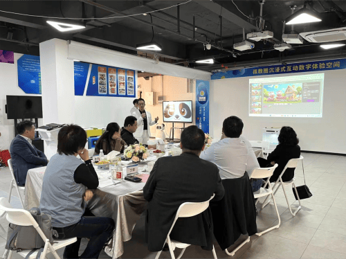 通过动态捕获实现人取画面及时互动,以及涵盖糖画、扎染、剪纸等非遗从题的十大非遗文化教室。