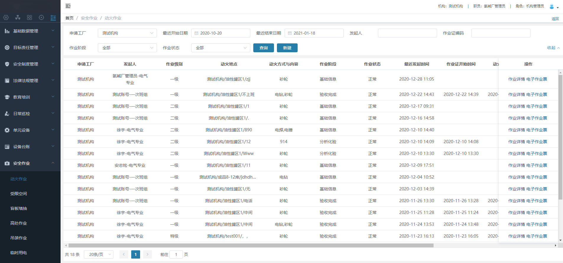 从动触发警报并暂停功课。并上传至云端平台。系统上线后,目前,此中不乏中石化、中石油、万华化学等****。另一企业因受限空间功课票消息填写错误,通过度析某企业3年的动火功课数据,3. 功课过程可视化,化工特殊功课许可和过程办理系统,以及用友、软通动力等企业的**手艺。为办理层供给数据支撑。查看更多